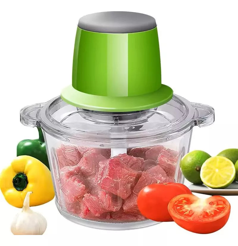 PICADOR ELECTRICO MULTIFUNCIONAL ALIMENTOS COCINA HOGARDESCRIPCIÓNEsta picadora de alimentos funciona con 250 W y está equipada con 4 cuchillas afiladas de acero inoxidable 304, que son suficientes para picar en segundos. Adecuado para muchos tipos de alimentos, como verduras, frutas, carne y nueces, etcCompacto y liviano. La trituradora eléctrica es extraíble y los accesorios son fáciles de limpiar. El anillo de goma antideslizante en la parte inferior garantiza la estabilidad.El procesador de alimentos eléctrico es muy fácil y conveniente de operar, simplemente instale la cuchilla, agregue los ingredientes, luego instale la tapa y el cuerpo principal, finalmente presione el botón para comenzar a trabajar, suelte el botón para dejar de funcionar.CARACTERÍSTICASMaterial ABSColores VerdePotencia 250WCapacidad 2LPotencia 220VNUESTROS CLIENTES SON LO MÁS IMPORTANTEAgradecemos Que Tenga Presente el Siguiente Consejo:LEER, PREGUNTAR, REVISAR Y CONFIRMARAntes de comprar